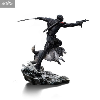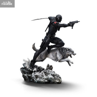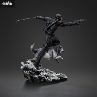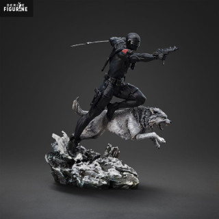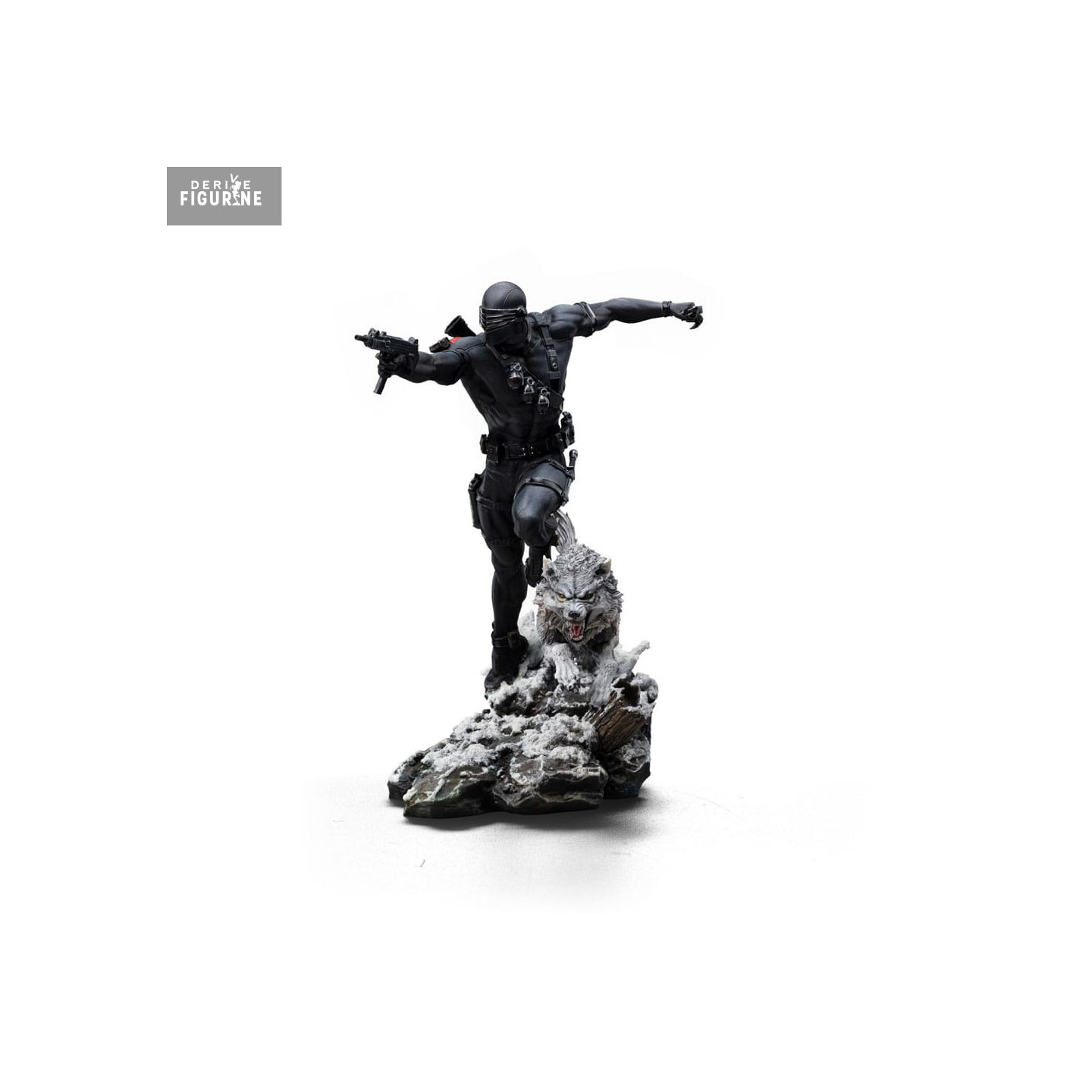 Figurine officielle de Snake Eyes en résine mesurant environ 23 x 16 x 22 centimètres, à l'échelle 1/10. Elle est issue de la collection Art Scale. Le fabricant est Iron Studios.