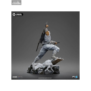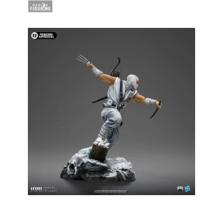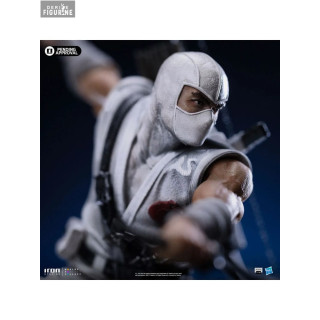 Figurine officielle de Storm Shadow en résine mesurant environ 23 x 16 x 16 centimètres, à l'échelle 1/10. Elle est issue de la collection Art Scale. Le fabricant est Iron Studios.