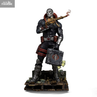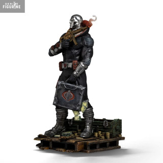 Figurine officielle de Destro en résine mesurant environ 22 centimètres de haut, à l'échelle 1/10. Elle est issue de la collection Art Scale. Le fabricant est Iron Studios.