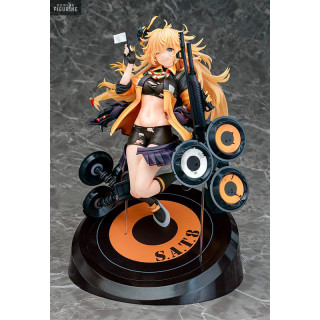 S.A.T.8 signifie Semi-Automatic Tactical, 8 shots, et comme vous l'aurez compris, c'est normalement une arme semi-automatique. Ici, c'est plutôt une jeune femme blonde, mais c'est parce qu'il s'agit de la version que l'on peut retrouver dans le jeu Girls Frontline. On peut voir qu'elle agite un mini drapeau blanc en signe d'abandon, mais vu les enceintes autour d'elle, elle va peut-être fêter ça en musique...