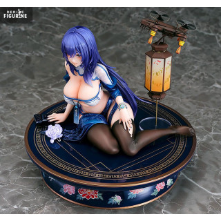 Issue de Girls' Frontline, DP-12 dévoile toute sa grâce et son charme mystérieux dans cette somptueuse figurine "Echeveria Lantern". Assise avec élégance sur une base richement décorée de motifs floraux, vêtue d'une tenue bleue dévoilant subtilement sa silhouette, elle incarne un équilibre parfait entre raffinement, sensualité et délicatesse. Son regard doux, sa posture relâchée et les jeux de tissus flottants autour d’elle renforcent son aura envoûtante.