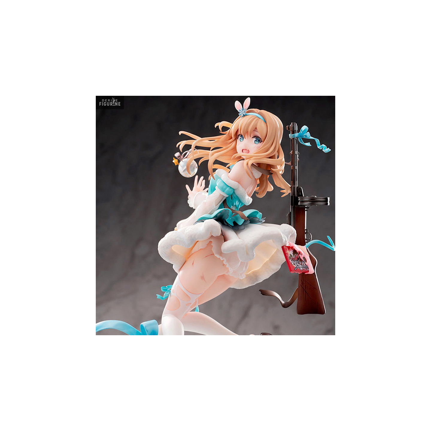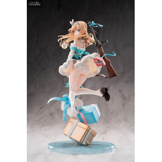 Girls Frontline s'offre une figurine de la jeune femme incarnant l'arme finnoise appelée le KP-31 qui est un genre de pistolet mitrailleur ! Cette version Korvatunturi Pixie nous propose la jeune femme dans une tenue trop mignonne et avec un rendu plutôt dynamique avec des cadeaux à ses pieds.