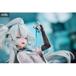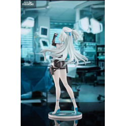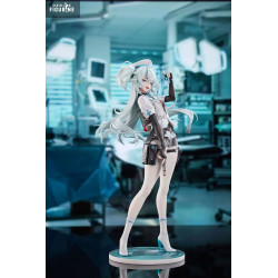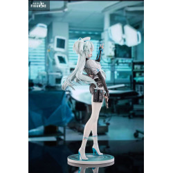 Cheveux longs bleu-argenté flottants, regard malicieux, seringue à la main et silhouette élancée : chaque détail de cette figurine respire la précision et le raffinement. Le contraste entre la blouse blanche ajustée, les gants noirs transparents et les bas jarretelles renforce son charisme unique. L’ensemble évoque un parfait équilibre entre sensualité et autorité médicale.