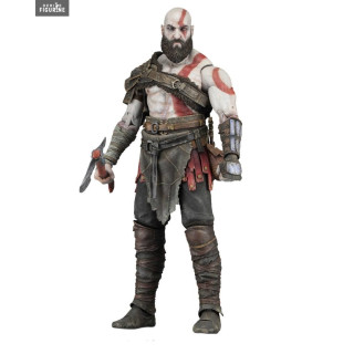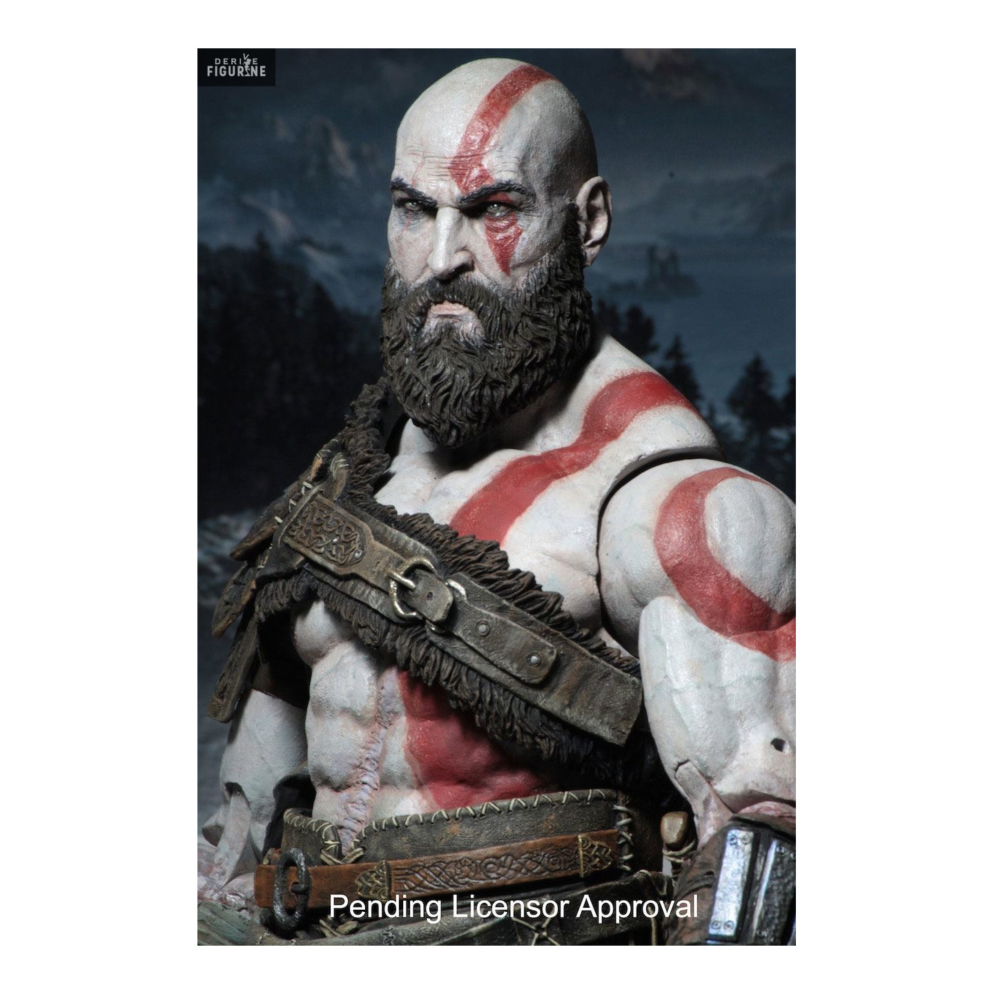 Figurine officielle de Kratos mesurant environ 18 centimètres de haut. Le fabricant est NECA.