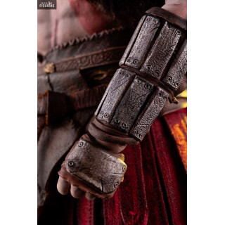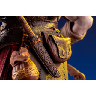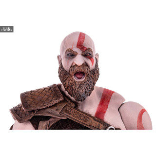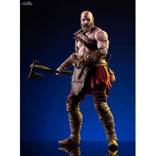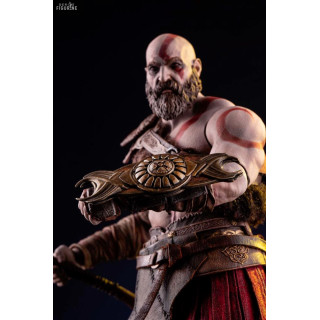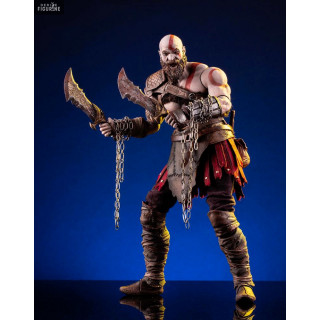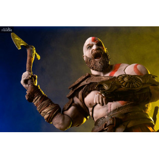 Figurine officielle de Kratos mesurant environ 33 centimètres de haut, à l'échelle 1/6. Le fabricant est Mondo.