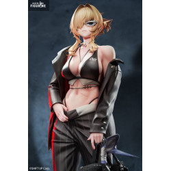 Fabriquée en PVC et mesurant environ 25 cm, cette figurine à l’échelle 1/7 restitue fidèlement les textures du tissu, les reflets du cuir verni et les détails du sac — notamment la petite peluche stylisée qui y est accrochée. Le socle noir miroir souligne l’élégance sobre de l’ensemble, parfait pour l’exposer sans détour sur ton étagère.