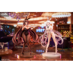 Issues de Goddess of Victory: Nikke, Noir et Blanc forment un duo à la fois contrasté et complémentaire. Tirées de l’univers post-apocalyptique du jeu, elles apparaissent ici dans une version bunny girl chic et décalée, loin des champs de bataille mais toujours prêtes à faire tourner les têtes.