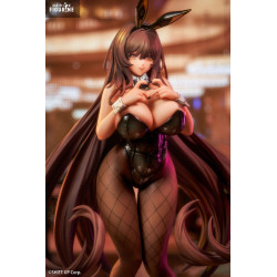 Éléments spéciaux : costume bunny noir, collants résille, cheveux sculptés, socle doré, oreilles dorées