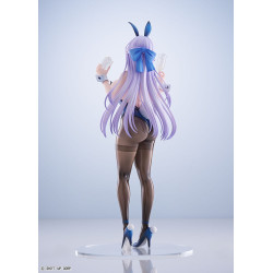 La figurine la présente dans un costume bunny bleu profond, ajusté et brillamment sculpté, accompagné d’un nœud papillon, de poignets blancs et d’oreilles de lapin dressées. Ses collants noirs transparents ajoutent un rendu réaliste, tandis que ses cheveux violets ondulent en longues mèches fluides. Quelques détails renforcent son identité visuelle, comme la petite queue de lapin blanche et un charm rose accroché à sa hanche. Ses chaussures à talons, parfaitement assorties, complètent la tenue.