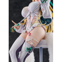 Rien qu’en la voyant, tu retrouves l’ambiance hivernale très stylée de Rupee dans Goddess of Victory: Nikke. Cette figurine officielle en PVC d’environ 30 cm de haut, à l’échelle 1/6 et fabriquée par Max Factory, reprend sa tenue “Winter Shopper” dans une version grande taille très détaillée. Rupee est assise sur un tabouret haut, installée sur un socle circulaire décoré de fourrure blanche et d’éléments translucides turquoise, comme si elle venait d’immortaliser une sortie shopping sous la neige.