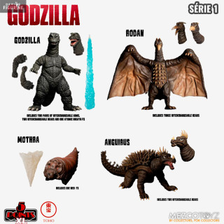 La Série 1 contient donc Godzilla, Mothra, Anguirus et Rodan avec des parties interchangeables ou accessoires.