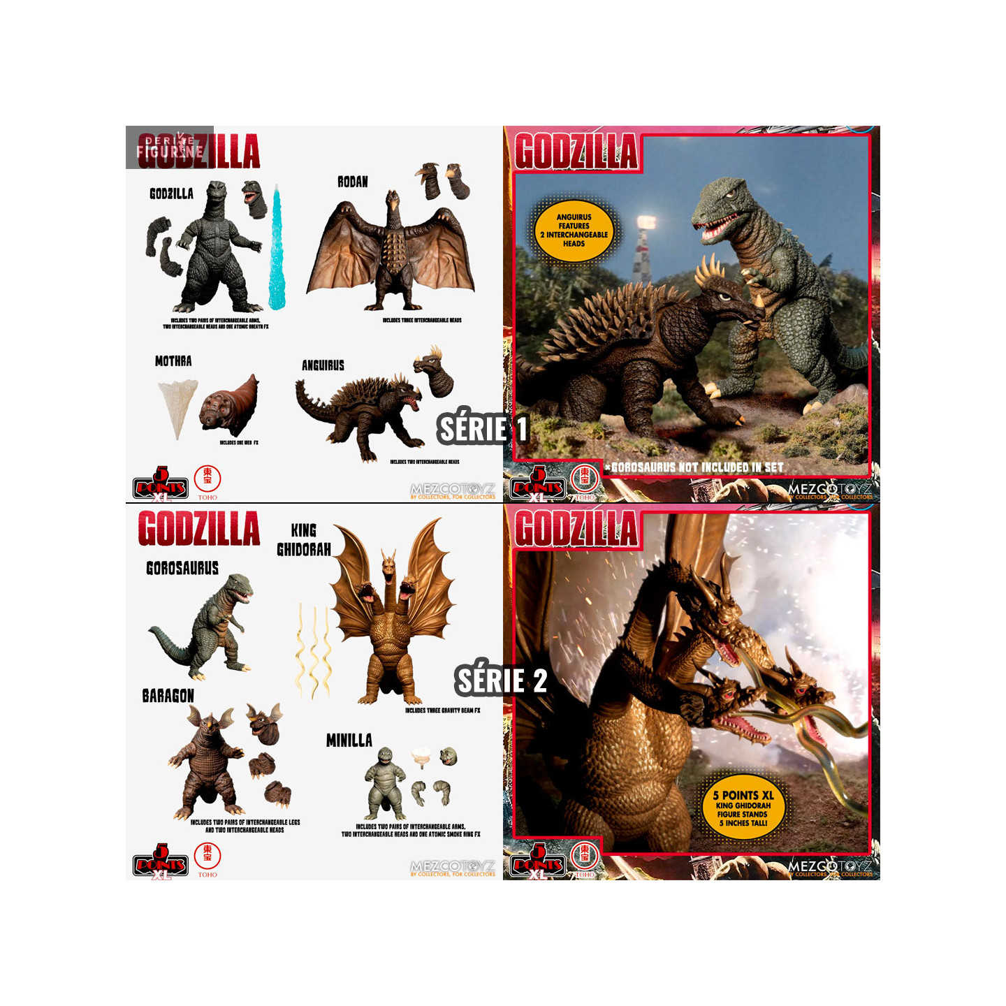Figurines officielles de Godzilla au choix entre la Série 1 ou 2 des Destroy Monsters mesurant environ 11 centimètres de haut. Elles sont issues de la collection 5 Points XL. Le fabricant est Mezco Toys.