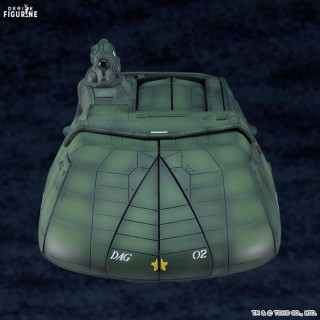 Le Super X2, issu du film culte "Godzilla vs. Biollante", est un véhicule de combat stratégique conçu pour affronter Godzilla. Sa conception robuste et son arsenal avancé en font un élément clé dans les tentatives de l'humanité de défendre ses villes contre l'énorme Kaiju. Ce modèle capture avec précision le design futuriste du Super X2, de sa carapace blindée vert foncé à ses systèmes d'armement sophistiqués, comprenant des missiles et un canon laser sur la tourelle.