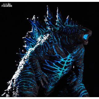 Avec ses 38 cm de long, 26 cm de haut et 21 cm de large, c’est une pièce massive – un titan prêt à déchirer l’atmosphère. Sculptée en PVC avec une finition détaillée à l’extrême, chaque écaille, chaque plaque dorsale, chaque nervure incandescente est ciselée avec soin. Le rendu texturé donne l’impression que la créature sort tout juste des profondeurs, irradiant d’énergie atomique.