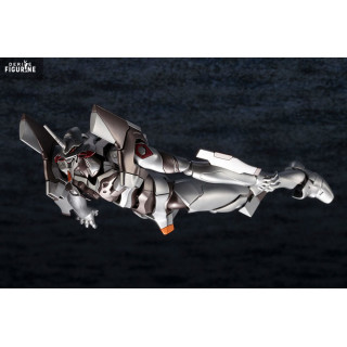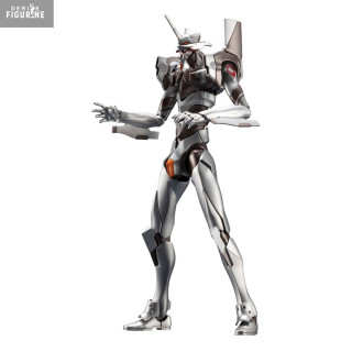 Le résultat est un mecha élancé, à l’allure agressive, dont la structure métallique évoque directement le célèbre kaiju cybernétique de l’univers Godzilla. Le schéma de couleurs argenté et gris acier, ponctué de touches rouges et orange, accentue l’effet blindé. Le tout conserve cependant les lignes nerveuses et les proportions allongées caractéristiques de l’Eva-01.