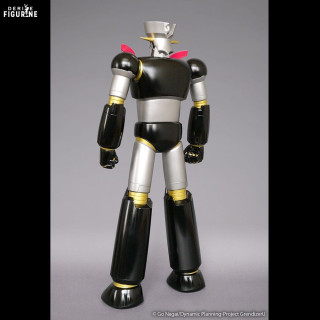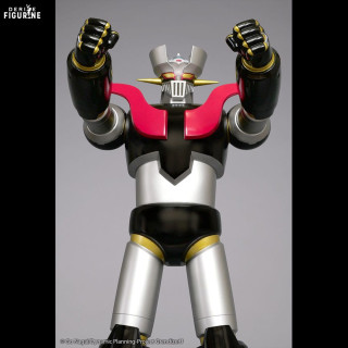 La figurine se dresse fièrement, exhibant son armure noire, argentée et rouge, avec des accents dorés qui rehaussent son allure majestueuse. Les proportions sont fidèlement respectées, et chaque détail, des articulations aux armes, est finement sculpté pour offrir une représentation authentique du Great Mazinger Z Grendizer U. Les matériaux de haute qualité utilisés garantissent non seulement une apparence impressionnante mais aussi une durabilité qui en fait une pièce de collection précieuse.