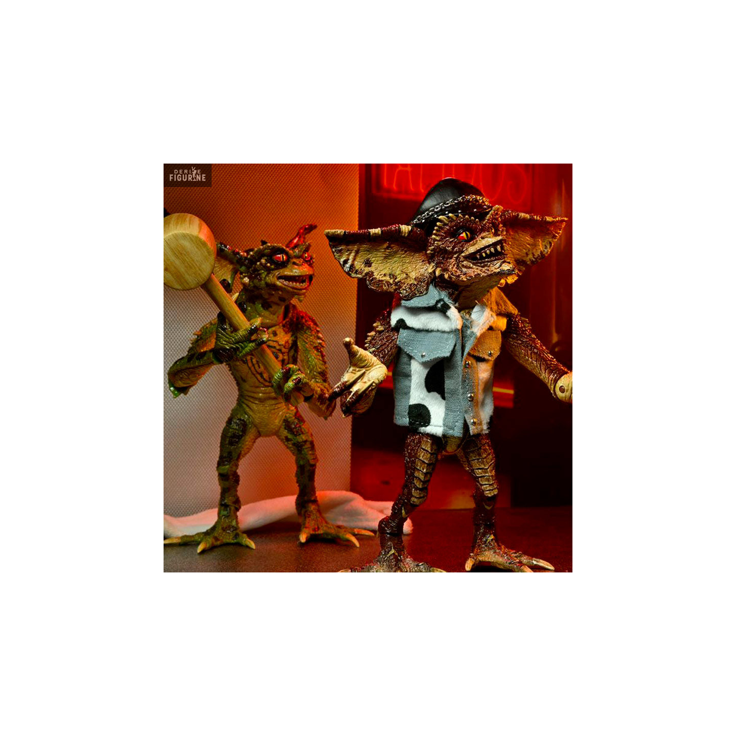 Figurines officielles de Gremlins en PVC mesurant environ 18 centimètres de haut. Le fabricant est NECA.