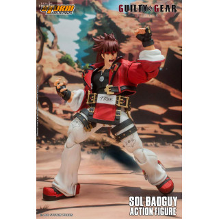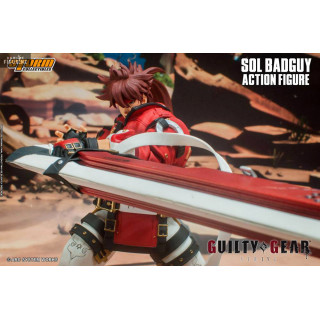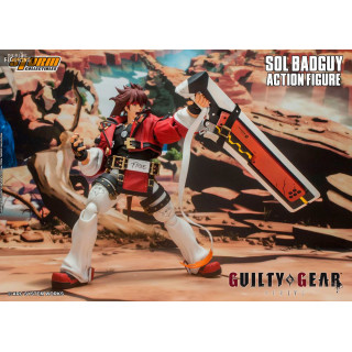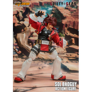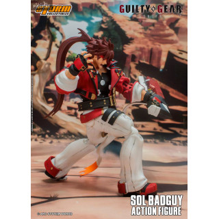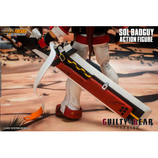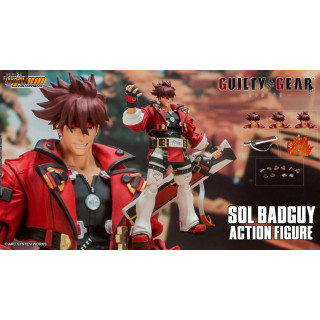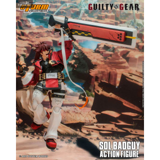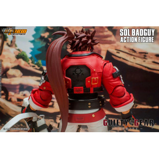 Figurine officielle de Sol Badguy mesurant environ 18 centimètres de haut, à l'échelle 1/12. Le fabricant est Storm Collectibles.