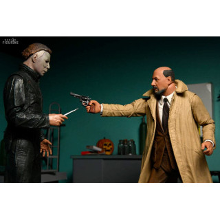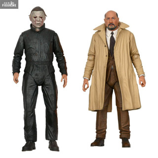 Figurines officielles de Michael Myers & Dr Loomis mesurant environ 18 centimètres de haut. Le fabricant est NECA.