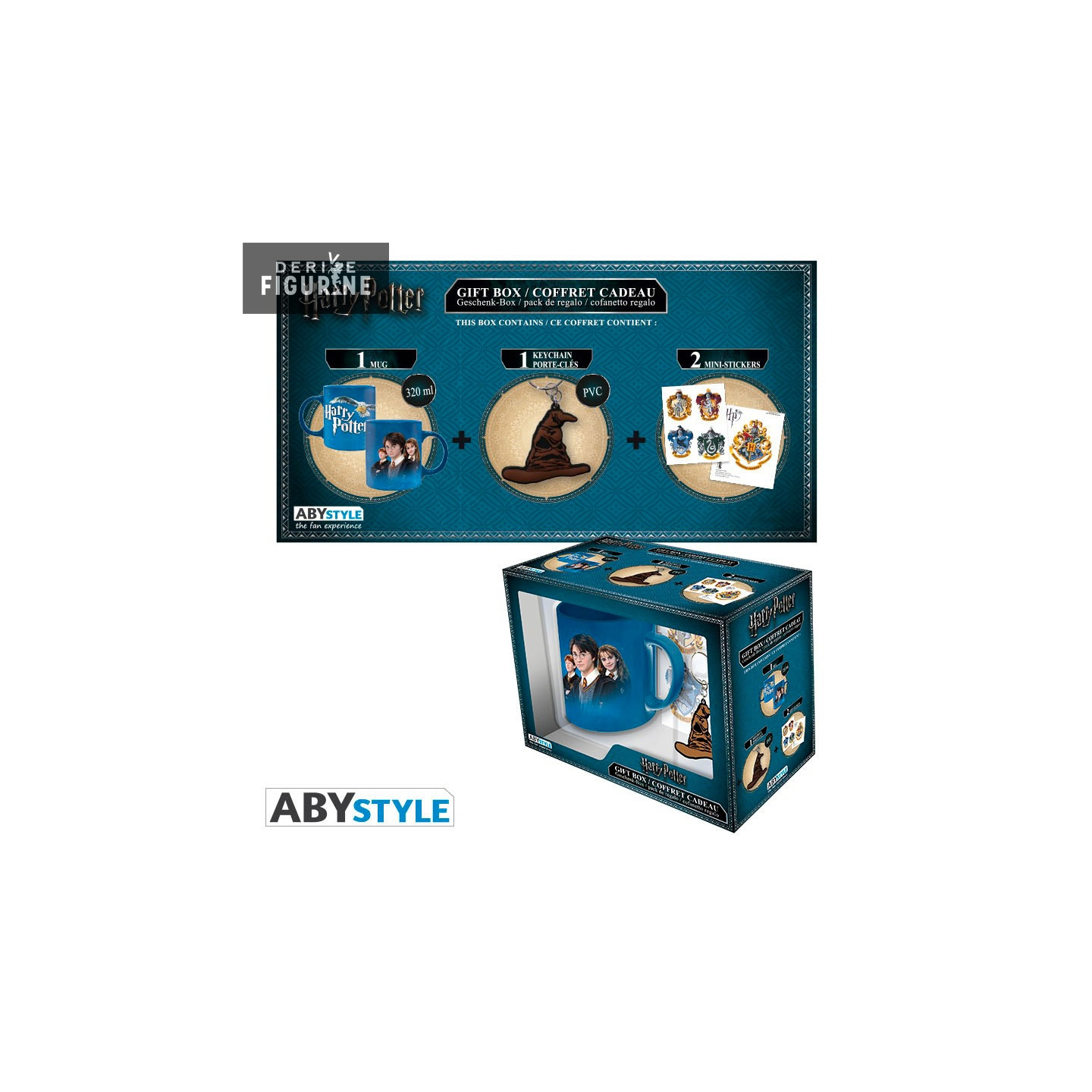 Voici un coffret cadeau qui devrait ravir les fans d'Harry Potter. Il contient deux planches de stickers, un mug de 32 cl et un porte-clés en PVC du Choixpeau.