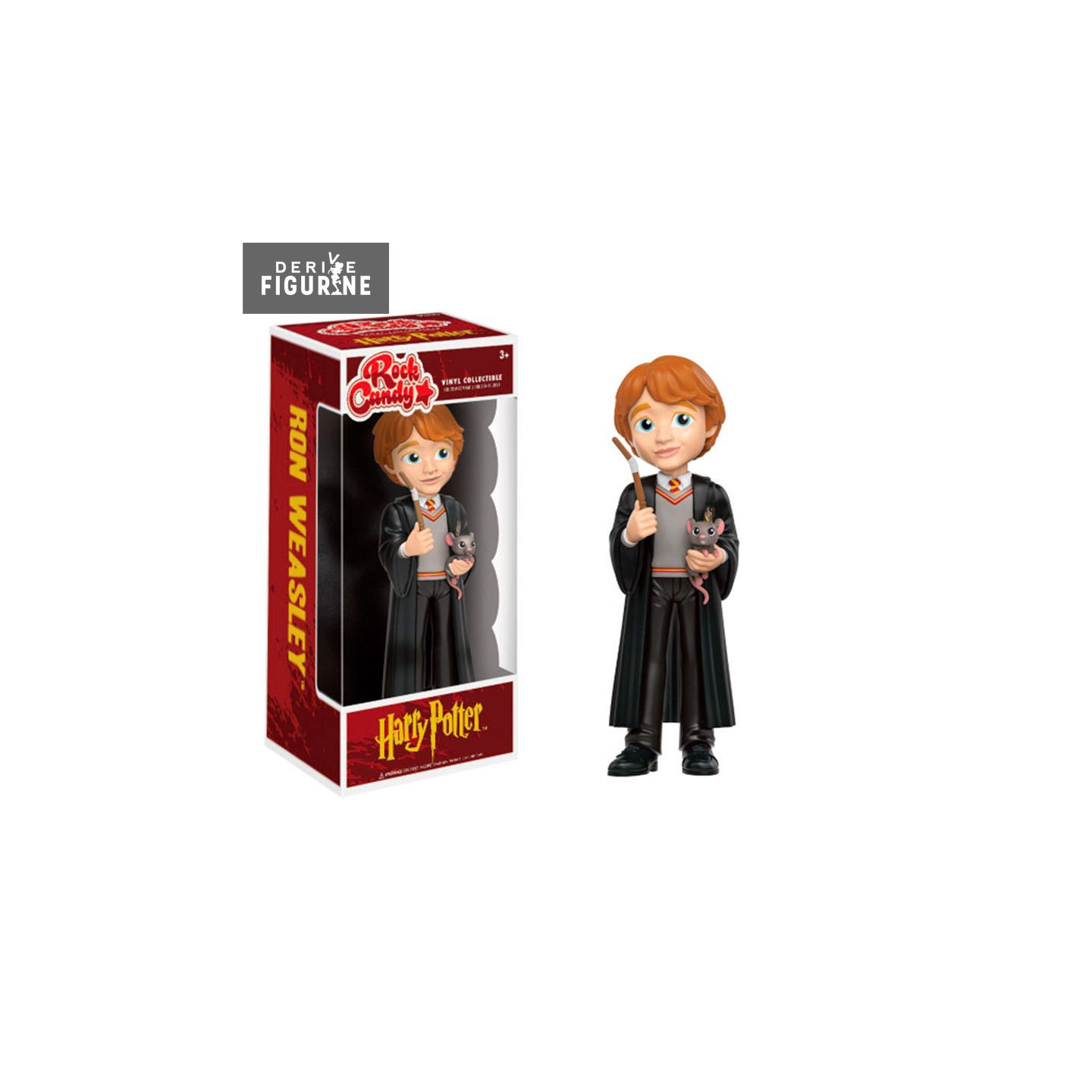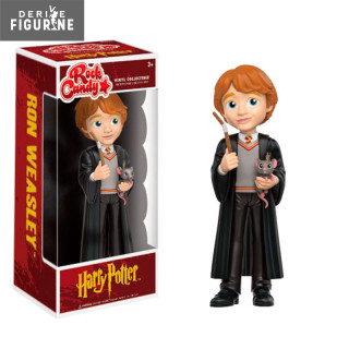 Figurine officielle de Ron et Croûtard en vinyle d'environ 13 centimètres de haut, issue de la collection Rock Candy. Ils sont tous les deux prêts à rejoindre Poudlard. Le fabricant est Funko.