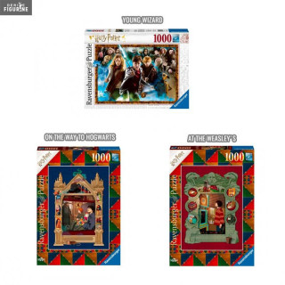 Puzzle Harry Potter officiel au choix entre la version Young Wizard, On The Way To Hogwarts ou At The Weasley's de 1 000 pièces mesurant environ 50 x 70 centimètres. Le fabricant est Ravensburger.