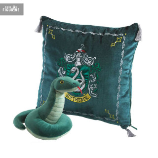 Peluche (~ 25 cm) + coussin (~ 34 x 34 cm) officiels de Serpentard en 100% polyester. Le fabricant est Noble Collection.