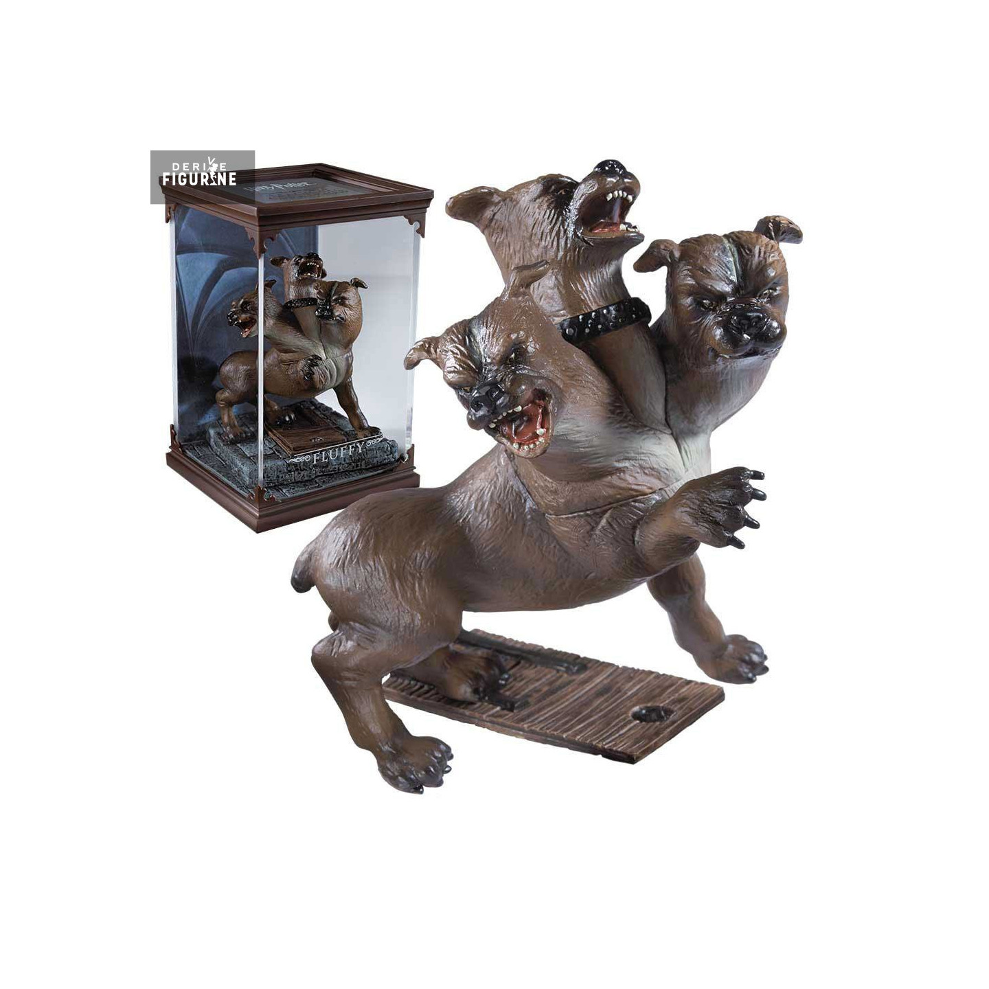 Touffu, le célèbre chien à trois têtes de Hagrid, prend vie dans cette superbe figurine en résine de la collection Magical Creatures. Redoutable gardien, il est ici représenté debout sur une trappe en bois, les trois têtes aux crocs acérés prêtes à défendre le passage. Chaque tête, avec ses détails expressifs – de la colère à la vigilance – témoigne d’un grand soin porté à la sculpture. La musculature puissante et la texture du pelage sont finement reproduites, rendant cette pièce impressionnante malgré son format compact.