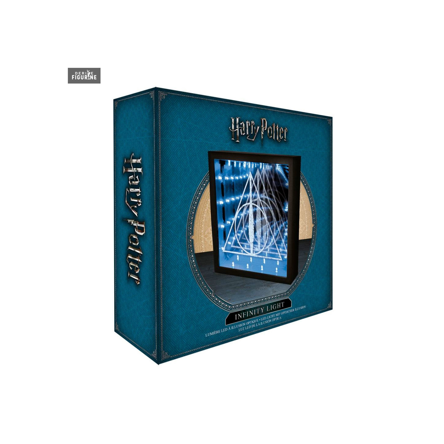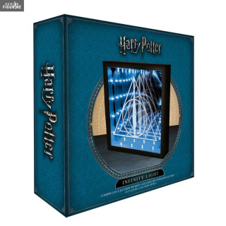 Lampe officielle Harry Potter et les Reliques de la Mort (Deathly Hallows) Infinity de 31 centimètres de haut. Le fabricant est Paladone. Fonctionne en USB ou avec trois piles AA non fournies.