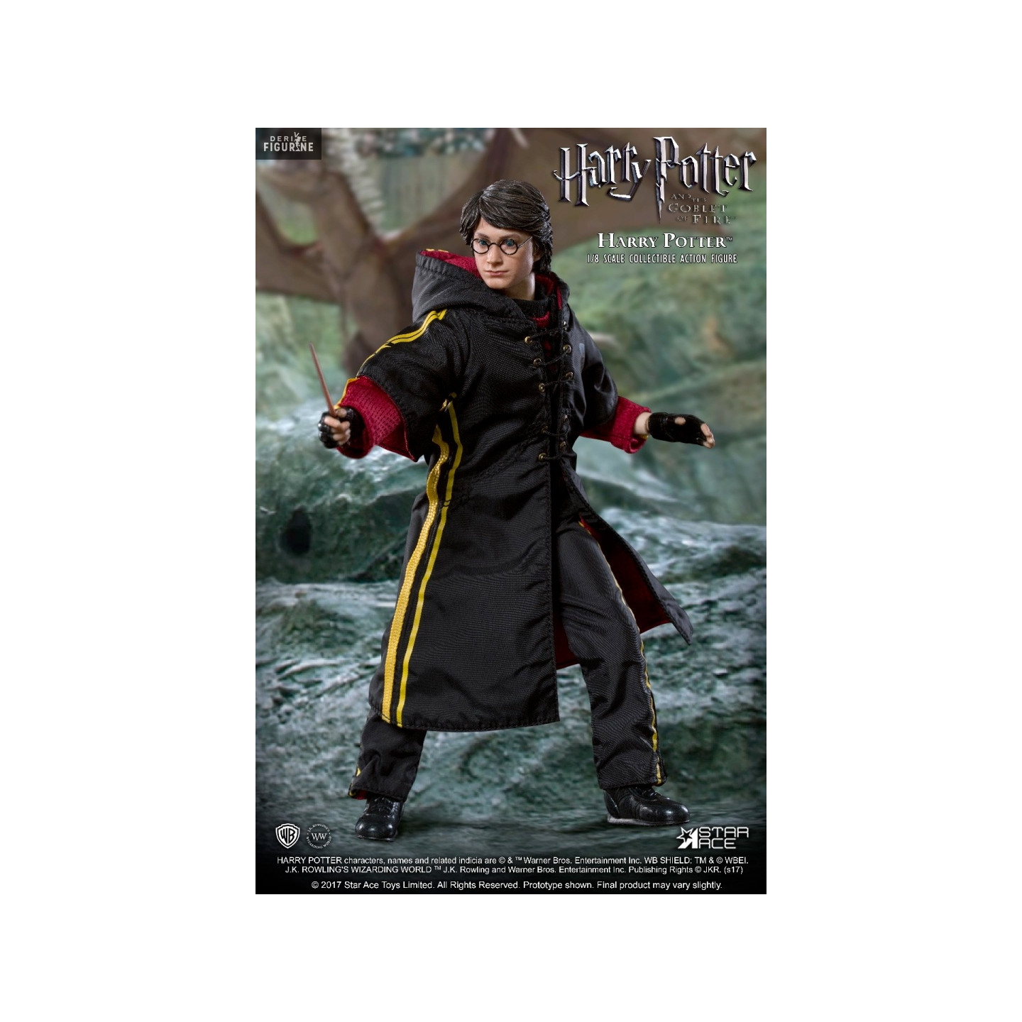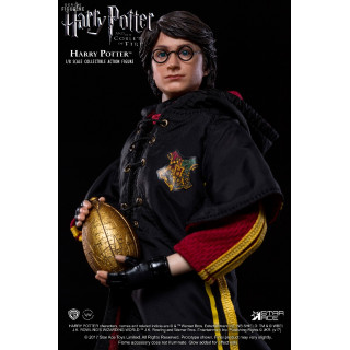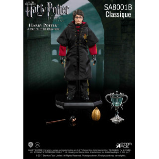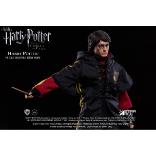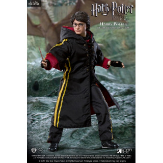 Figurine officielle de Harry Potter en PVC/tissu mesurant 22,5 centimètres de haut à l'échelle 1/8. Le fabricant est Star Ace. La version Deluxe nécessite deux piles AAA non fournies.