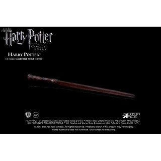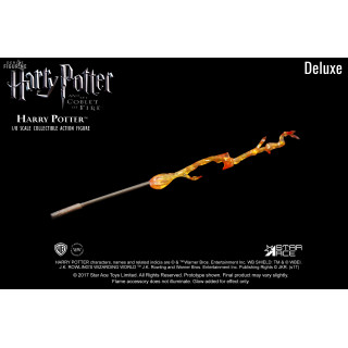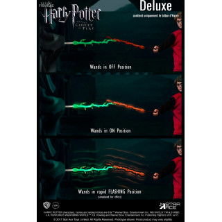 Figurine officielle de Harry Potter en PVC/tissu mesurant 22,5 centimètres de haut à l'échelle 1/8. Le fabricant est Star Ace. La version Deluxe nécessite deux piles AAA non fournies.