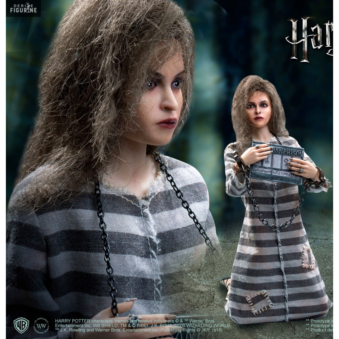 La dévotion et la folie de la belle et sinistre Bellatrix Lestrange pour le Lord Voldemort l'auront amenée tout droit dans les cellules de la prison Azkaban. La Mangemort est ainsi présentée dans sa tenue de prisonnier avec son lot d'accessoires et elle est franchement classe.