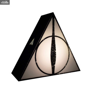 Cette lampe Harry Potter représente les célèbres reliques de la mort qui sont convoitées par celui dont on ne doit pas prononcer le nom... Il y a la baguette de sureau, la pierre de résurrection et la cape d'invisibilité. Ces trois artefacts forment ainsi les reliques de la mort.
