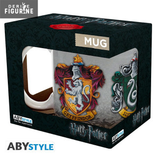 Si vous n'arrivez pas à vous décider sur votre maison préférée et que vous n'avez de Choixpeau à portée de main, voici un mug pour vous. En effet, il est décoré avec les blasons de Gryffondor, Serpentard, Poufsouffle et Serdaigle.