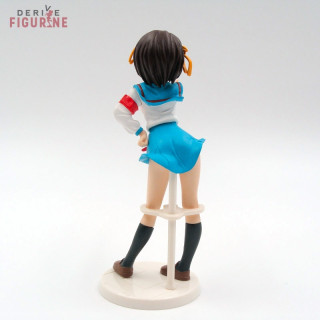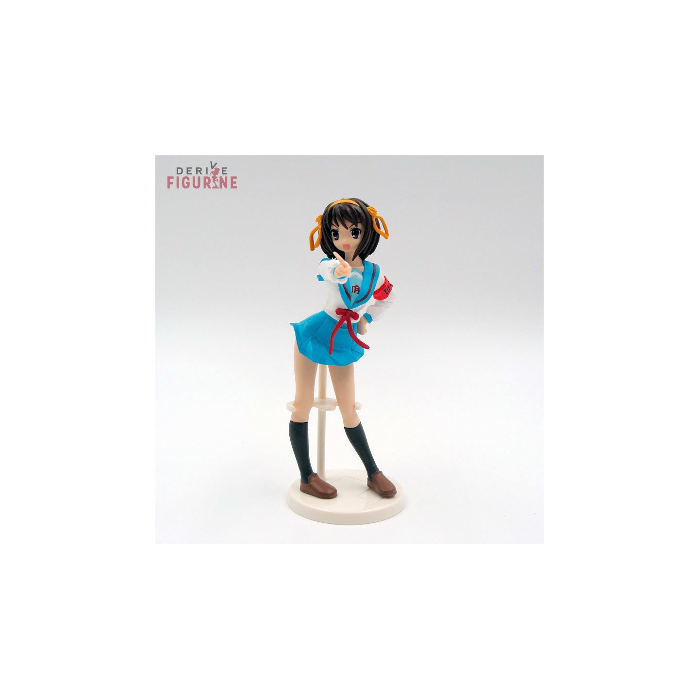 Figurine d'occasion et officielle de Haruhi Suzumiya en ABS/PVC d'environ 12 centimètres de haut. Haruhi porte sa tenue d'écolière et son brassard de la brigade SOS. Il s'agit d'un objet d'occasion en parfait état de la collection HG. Le fabricant est Bandai, vendu sans boîte.