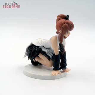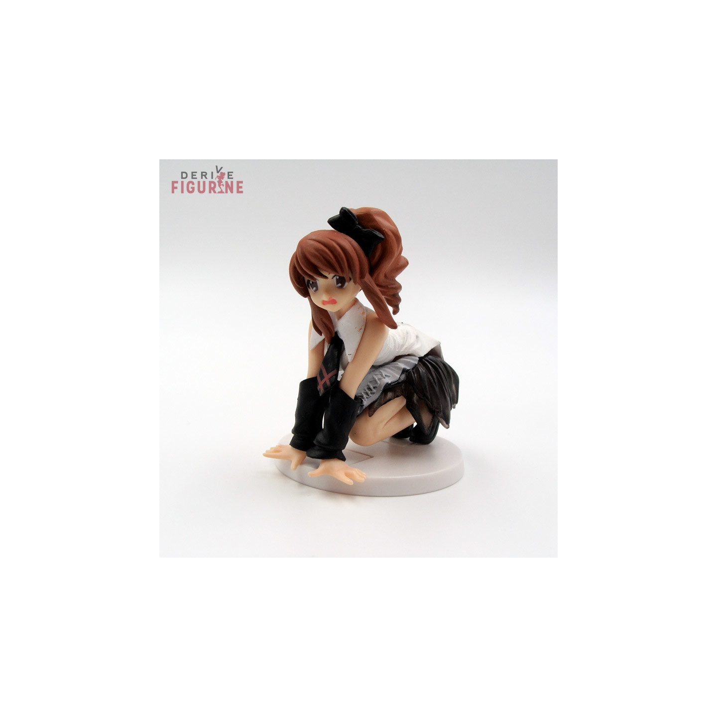 Figurine d'occasion et officielle de Mikuru Asahina en ABS/PVC d'environ 7 centimètres de haut. Mikuru est à quatre pattes sur son socle et n'a pas l'air sereine. Il s'agit d'un objet d'occasion en bon état de la collection HG, mais qui comporte quelques marques au niveau du col de la chemise. Le fabricant est Bandai, vendu sans boîte.