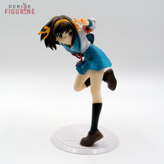 Figurine d'occasion et officielle de Haruhi Suzumiya en PVC d'environ 18 centimètres de haut à l'échelle 1/8. En équilibre sur un pied, Haruhi vous salue. Il s'agit d'un objet d'occasion en parfait état. Le fabricant est Alter, vendu avec boîte en assez bon état avec fenêtres un peu décollées et carton abîmé par endroit.