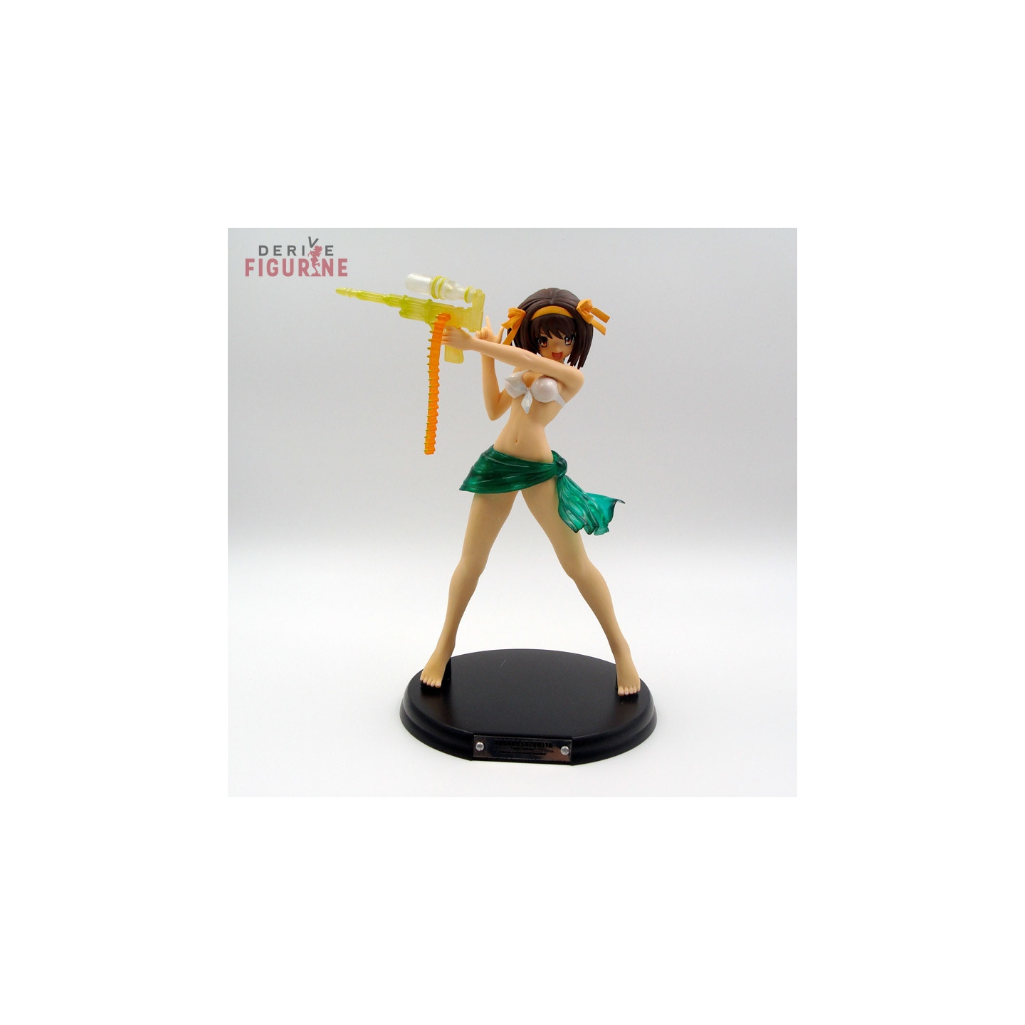 Figurine d'occasion et officielle d'Haruhi Suzumiya en PVC d'environ 22 centimètres de haut à l'échelle 1/7. Contient tous les accessoires : le pistolet à eau et les munitions. Il s'agit d'un objet d'occasion en parfait état, mais le socle a une rayure. Le fabricant est Griffon Enterprises, vendu avec boîte en assez bon état.