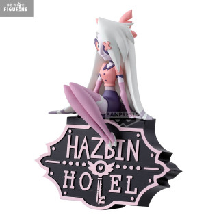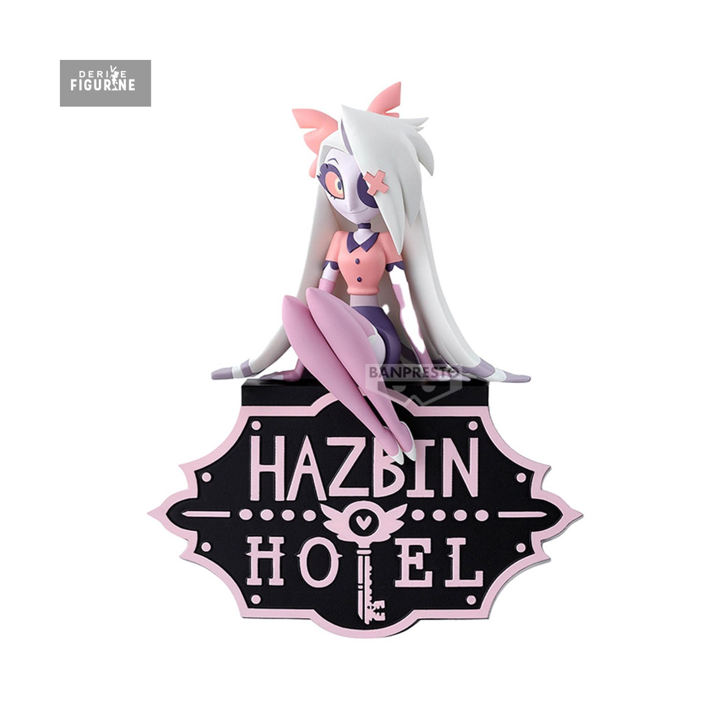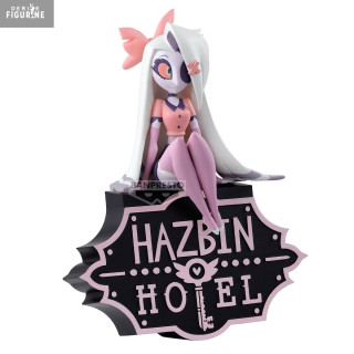 La figurine en PVC de 14 cm capture Vaggie assise avec élégance sur le panneau “Hazbin Hotel”, les jambes croisées et la main posée à plat derrière elle pour maintenir son équilibre. Sa chevelure violette, soigneusement peignée, contraste avec la blancheur de sa tenue d’uniforme, tandis que le jeu subtil de teintes pastel sur le socle met en valeur le logo iconique de la série. Cette posture détendue, presque nonchalante, rappelle son rôle de stratège calme au milieu de la tempête.
