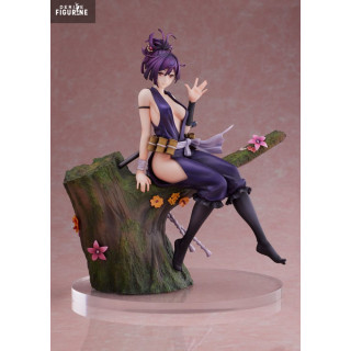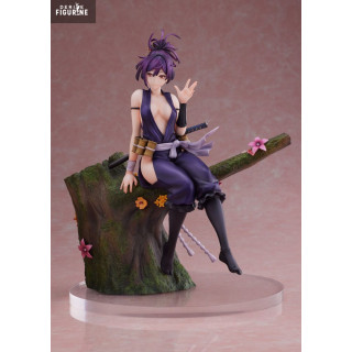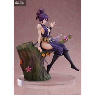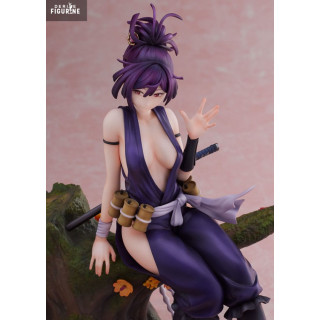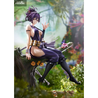 Cette figurine en PVC à l’échelle 1/7, issue de la collection F:Nex et fabriquée par FuRyu, mesure environ 22 cm. Elle représente Yuzuriha assise nonchalamment sur une souche décorée de fleurs, katana prêt à être dégainé dans son dos. Son costume moulant violet, ses cheveux relevés en chignon désordonné et son expression mi-amusée mi-détachée traduisent parfaitement son style unique. Le socle boisé et fleuri ajoute une touche de poésie qui contraste avec la nature de son métier. Un équilibre entre sensualité, sérénité et menace, magnifiquement capturé.