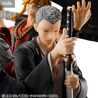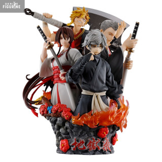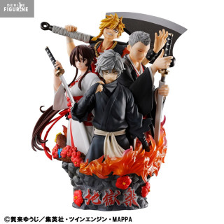 Le design, fidèle à l’œuvre, met en avant leurs postures combatives et expressions déterminées. Les détails des vêtements – du noir discret de Gabimaru au blanc pur et rouge vif de Sagiri – sont renforcés par un socle spectaculaire, orné de flammes sculptées et de rochers texturés, sur lequel est inscrit le titre de la série en rouge vif.