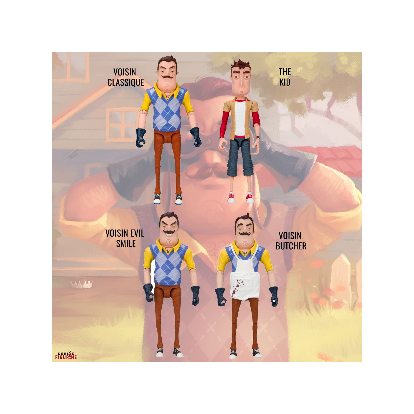 Vous aimez le jeu vidéo Hello Neighbor et son univers qui vous plonge en plein cœur de la vie de votre voisin un peu étrange ? Dans ce cas, sachez que vous allez pouvoir vous offrir des figurines de ce jeu. Vous avez le choix entre trois versions du voisin (Classique, Butcher ou Evil Smile) ou The Kid, le personnage que vous incarnez. Sur qui va se porter votre choix ?