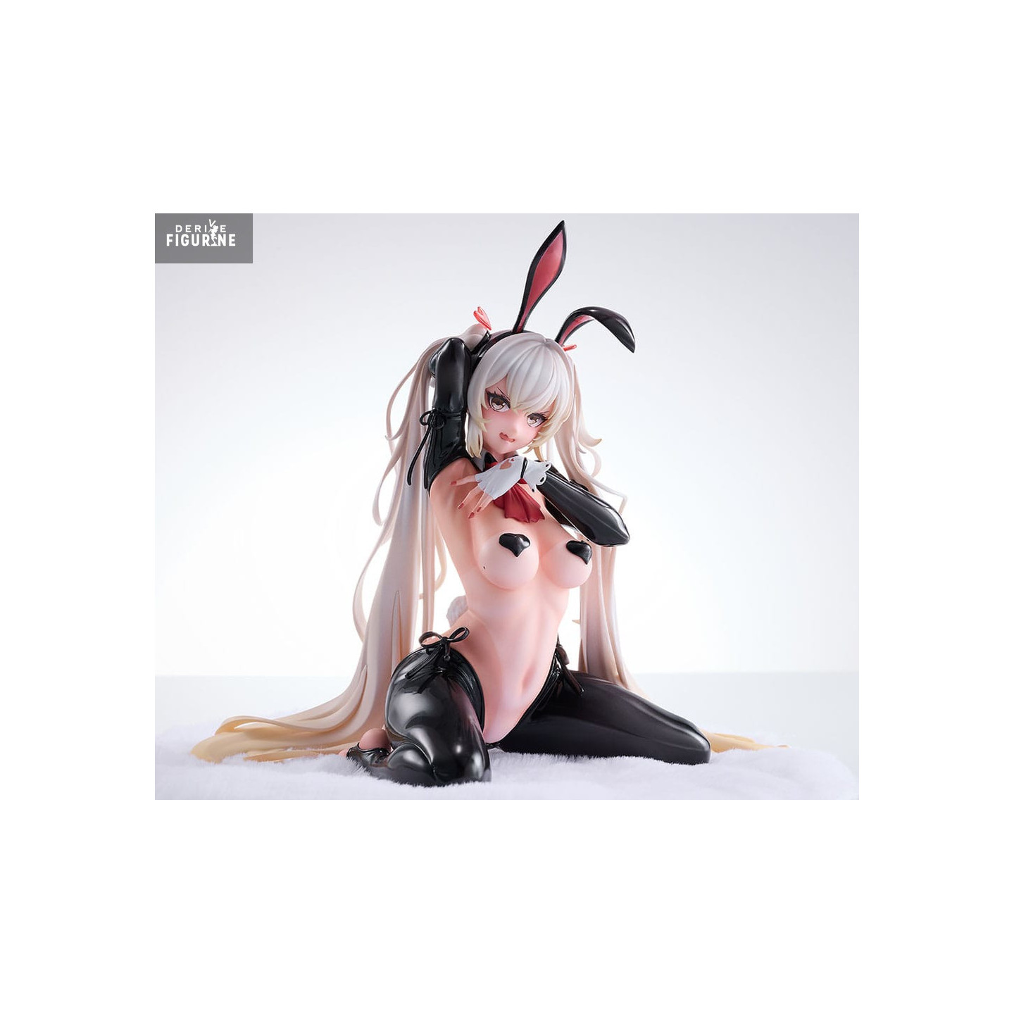 Nana Kuroe revient dans une version encore plus audacieuse que jamais. Dans cette version standard — plus déshabillée que la Tapestry Edition — elle conserve sa pose assise provocante, mais troque le body partiel pour une nudité assumée, simplement soulignée par quelques accessoires de bunny girl : gants longs en vinyle noir, oreilles de lapin, col et manchettes à nœuds papillon.