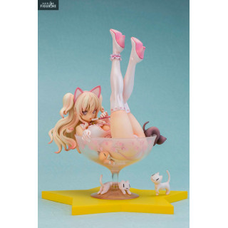 Je ne sais pas ce qu'il y avait dans la coupelle où se trouve la jeune femme, mais vu le nombre de chatons autour d'elle, il est possible que ce soit du lait. En tout cas, si vous aimez les chats et surtout cette demoiselle, vous pouvez l'ajouter à votre collection.