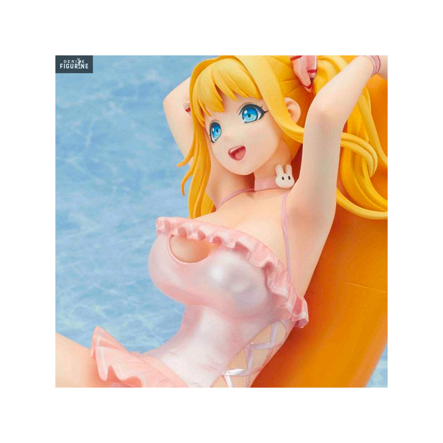 La jeune demoiselle que voici porte un maillot de bain rose avec des froufrous et la bouée sur laquelle elle se trouve est amusante puisqu'il s'agit d'une carotte. Alors si vous voulez piquer une petite tête pour vous rafraîchir avec Alice, vous savez ce qu'il vous reste à faire.