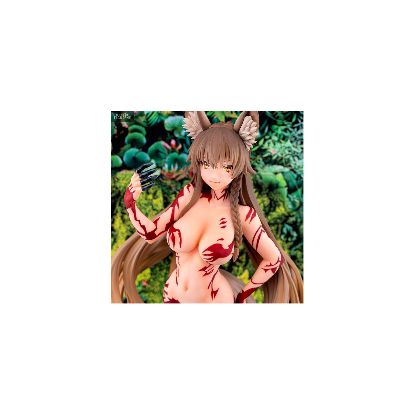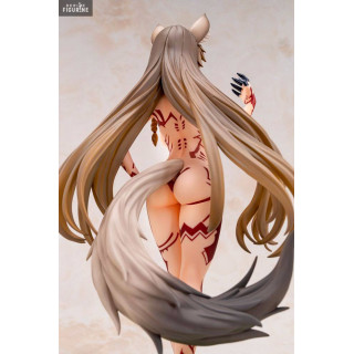 La belle statuette que vous avez sous les yeux est à moitié une femme et à moitié une louve. On peut ses oreilles ainsi que sa queue qui rappellent le fait qu'elle n'est pas totalement humaine. Elle possède aussi des tatouages rouges sur le corps qui peuvent disparaître.