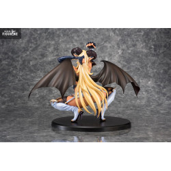 La figurine mesure environ 20 cm de haut, à l’échelle 1/5,5. Entièrement en PVC, elle repose sur un socle circulaire noir discret. Les finitions sont nettes : dégradés sur la peau, reflets métalliques sur les accessoires, détails des mèches et des ailes. Une pièce forte, réservée à un public adulte, qui ne laisse pas indifférent.