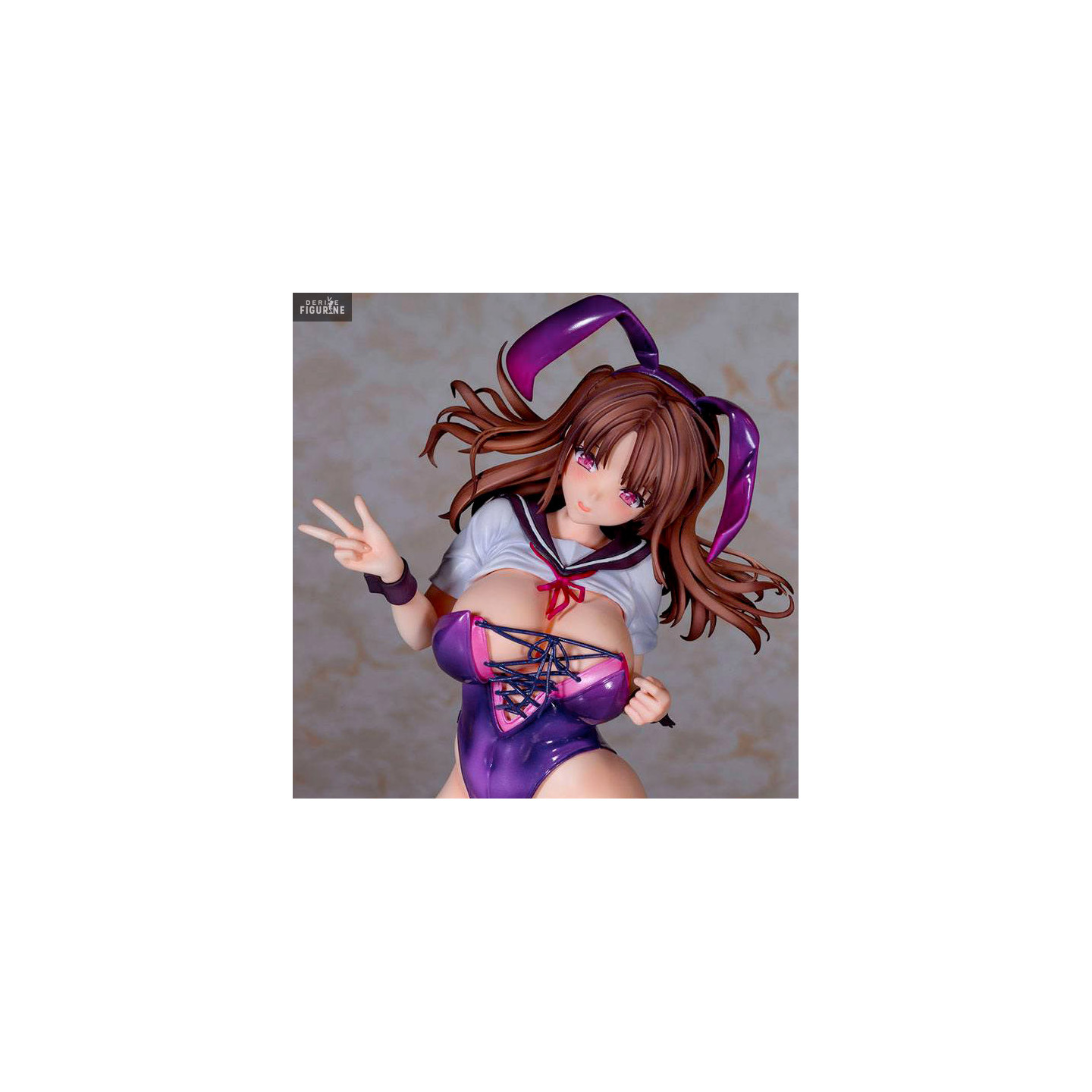 La jeune demoiselle que vous avez sous les yeux possède deux facettes différentes d'elle. La première vous montre qu'elle est une étudiante, car elle porte une tenue d'écolière, mais si vous regardez ce qu'elle a dessous, vous verrez que c'est beaucoup plus sexy. Il s'agit d'un body violet, assorti à ses oreilles de lapin, et il est même possible de la dénuder encore plus.