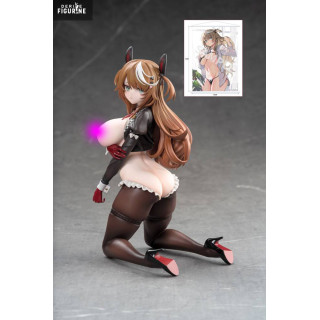 Simao Mochi, création originale aux courbes voluptueuses, prend vie dans cette figurine Bunny Girl DX au style résolument séduisant. Inspirée d’une illustration sensuelle, elle s'affiche à genoux dans une pose suggestive qui met en valeur ses formes généreuses. Vêtue d’une tenue bunny noire ultra moulante, complétée par des bas en résille et des talons hauts, elle incarne à merveille l’esthétique glamour des bunny girls, tout en adoptant une attitude à la fois distante et provocante.
