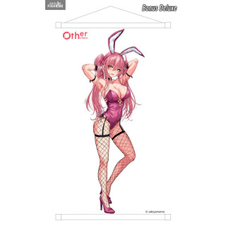 Vous êtes chanceux car vous avez la chance d'avoir sous les yeux une jolie jeune femme dans une tenue de bunny girl rose. Elle a également des cheveux assortis à sa tenue, et des yeux verts qui vous transpercent. En plus de cela, elle n'hésitera pas à retirer le haut si besoin pour vous convaincre de l'acheter, et si cela n'est pas suffisant, vous avez la version Deluxe qui possède en plus un poster (~ 30 x 60 cm).